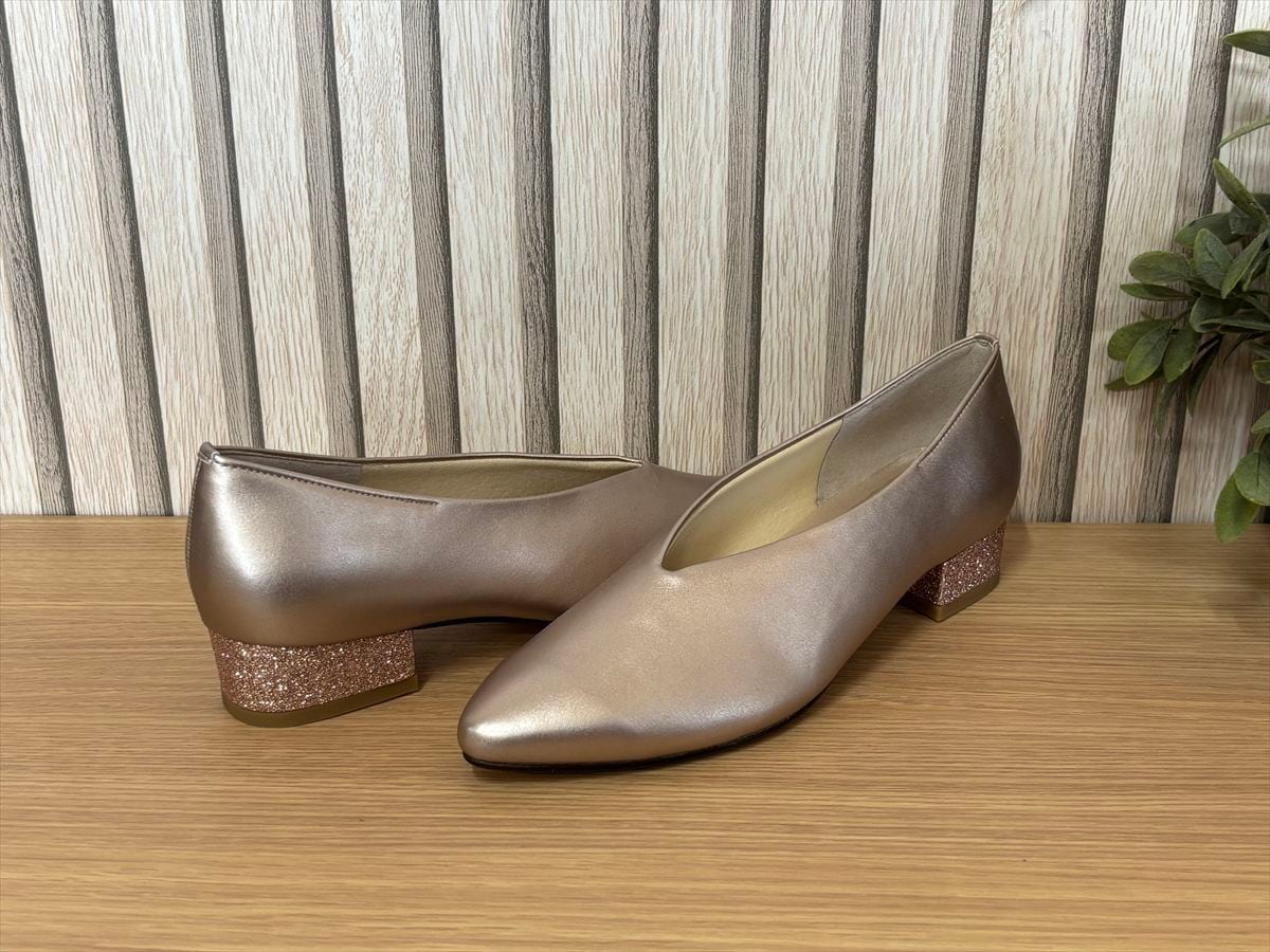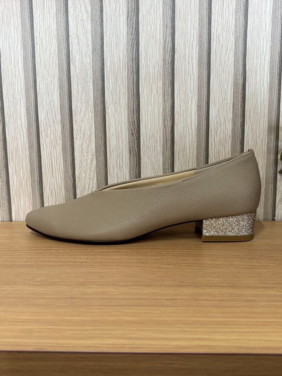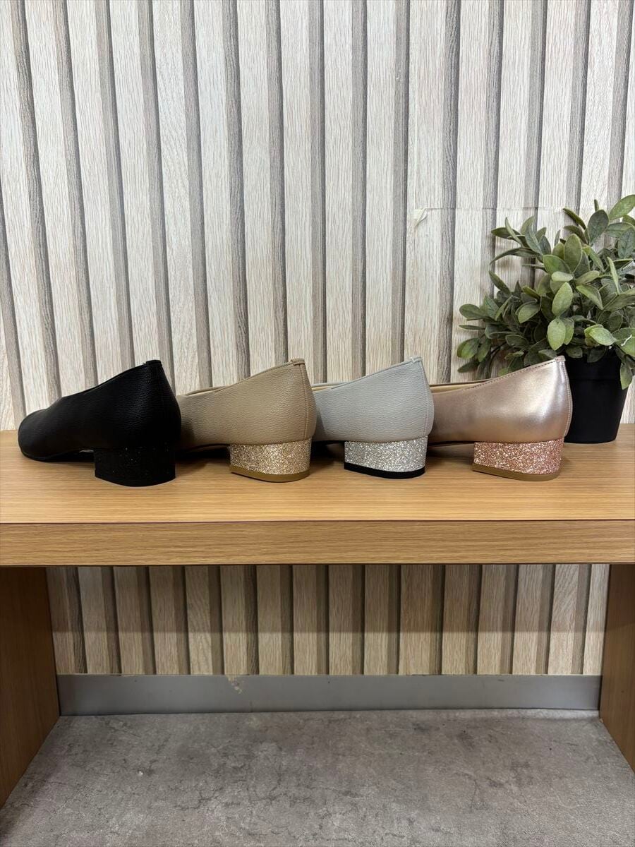 個性を引き立てるグリッターヒールがアクセントとなり、さりげない華やかさをプラス。日常のコーディネートに、特別な日のおしゃれにもぴったりです。
