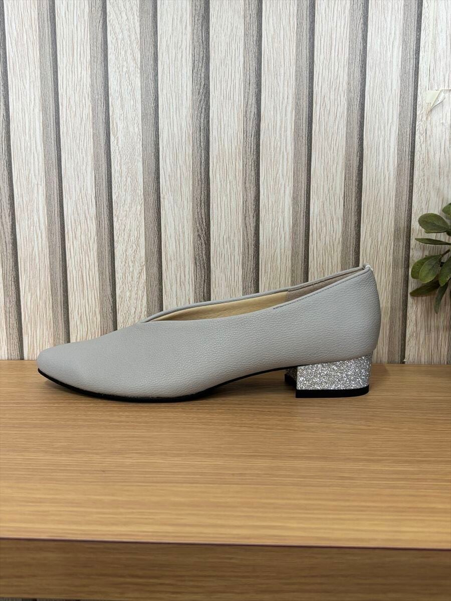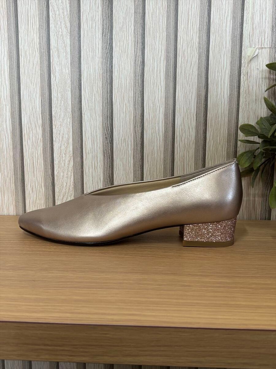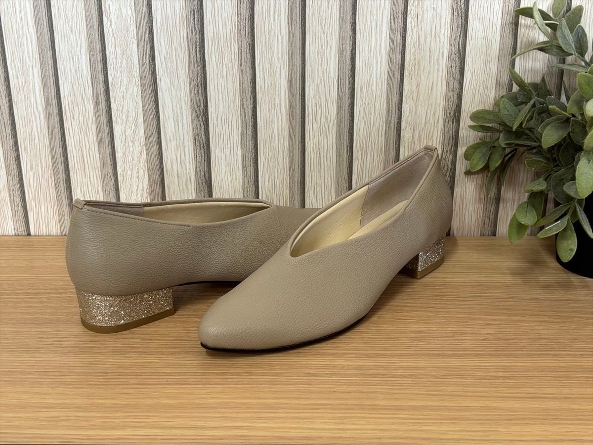 個性を引き立てるグリッターヒールがアクセントとなり、さりげない華やかさをプラス。日常のコーディネートに、特別な日のおしゃれにもぴったりです。