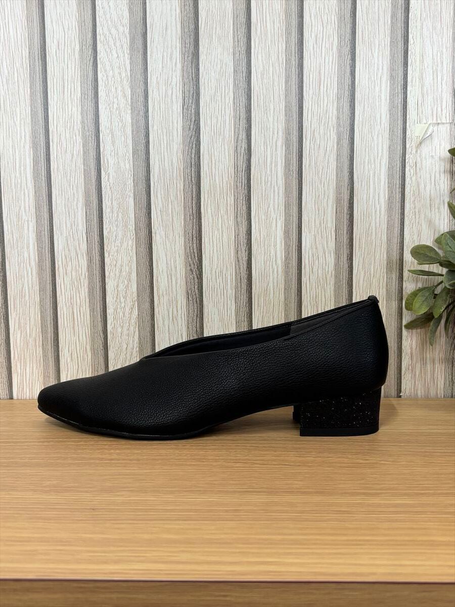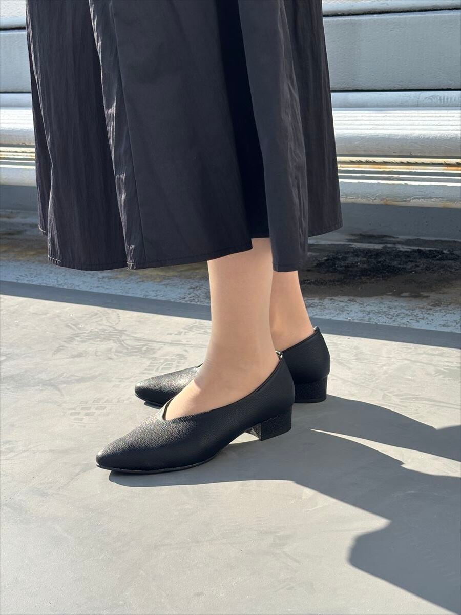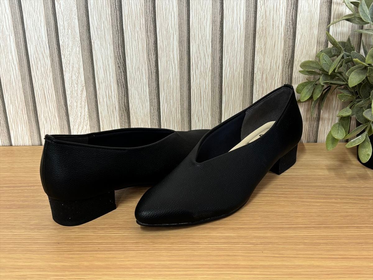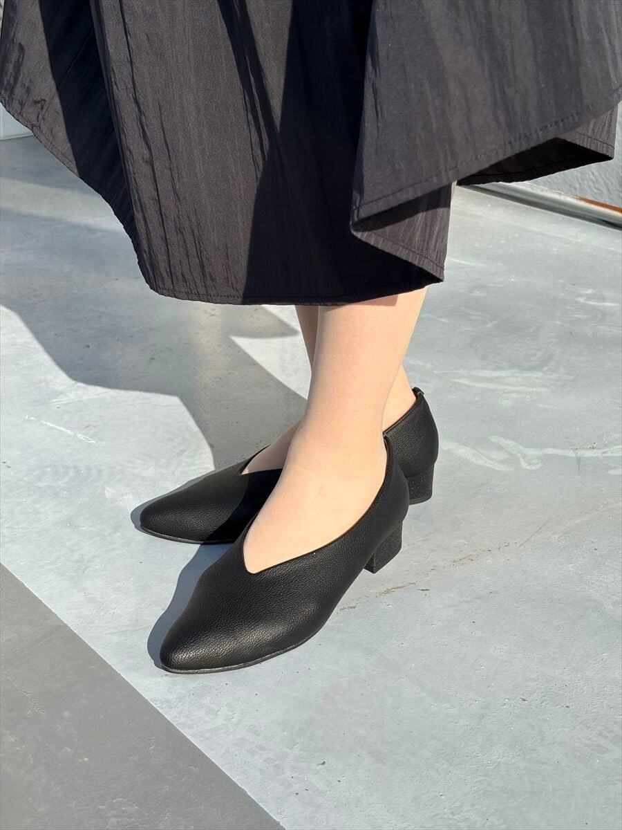 3㎝ヒール 甲深Vカットプレーンパンプス