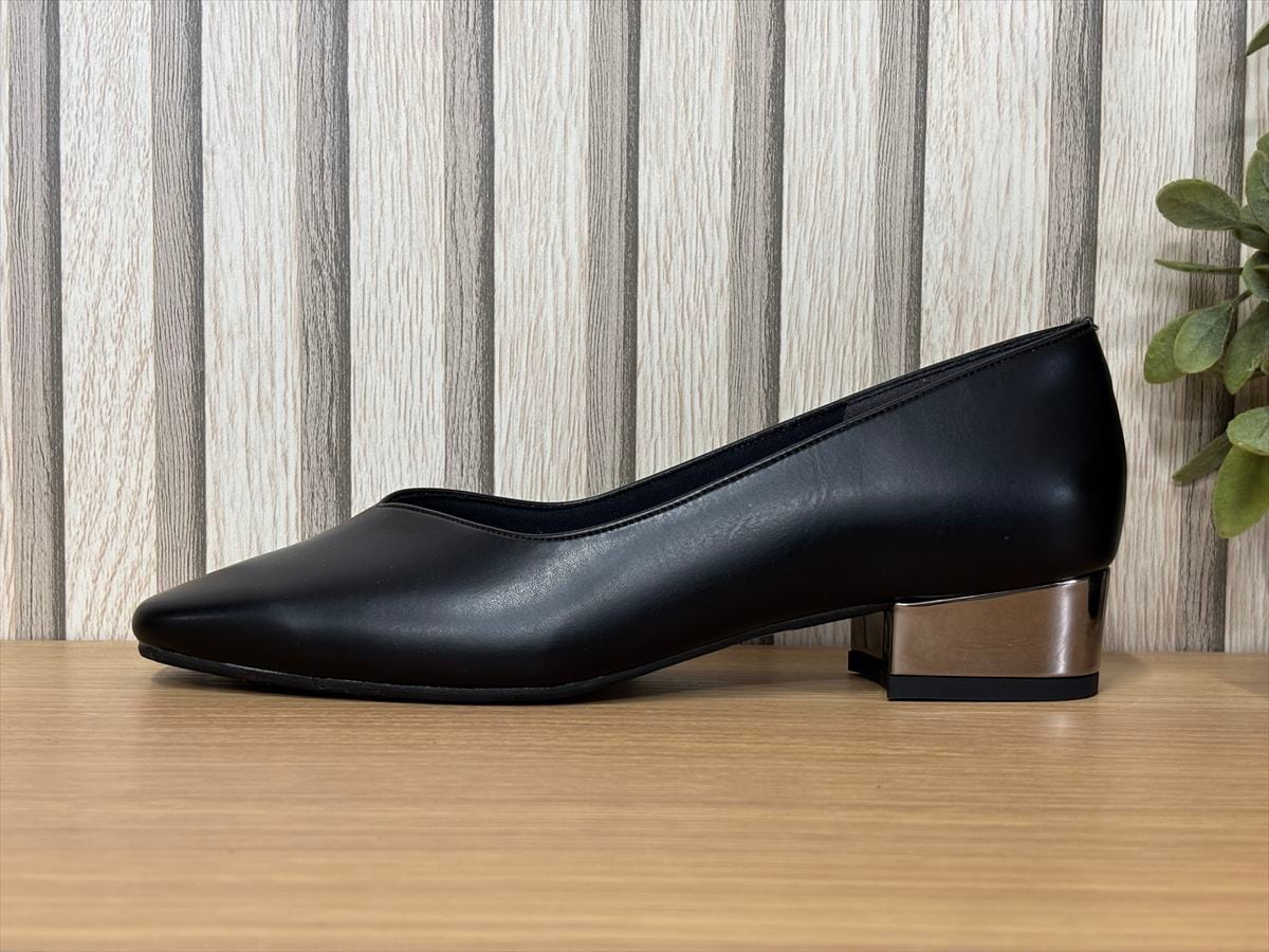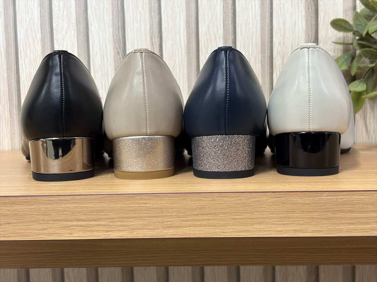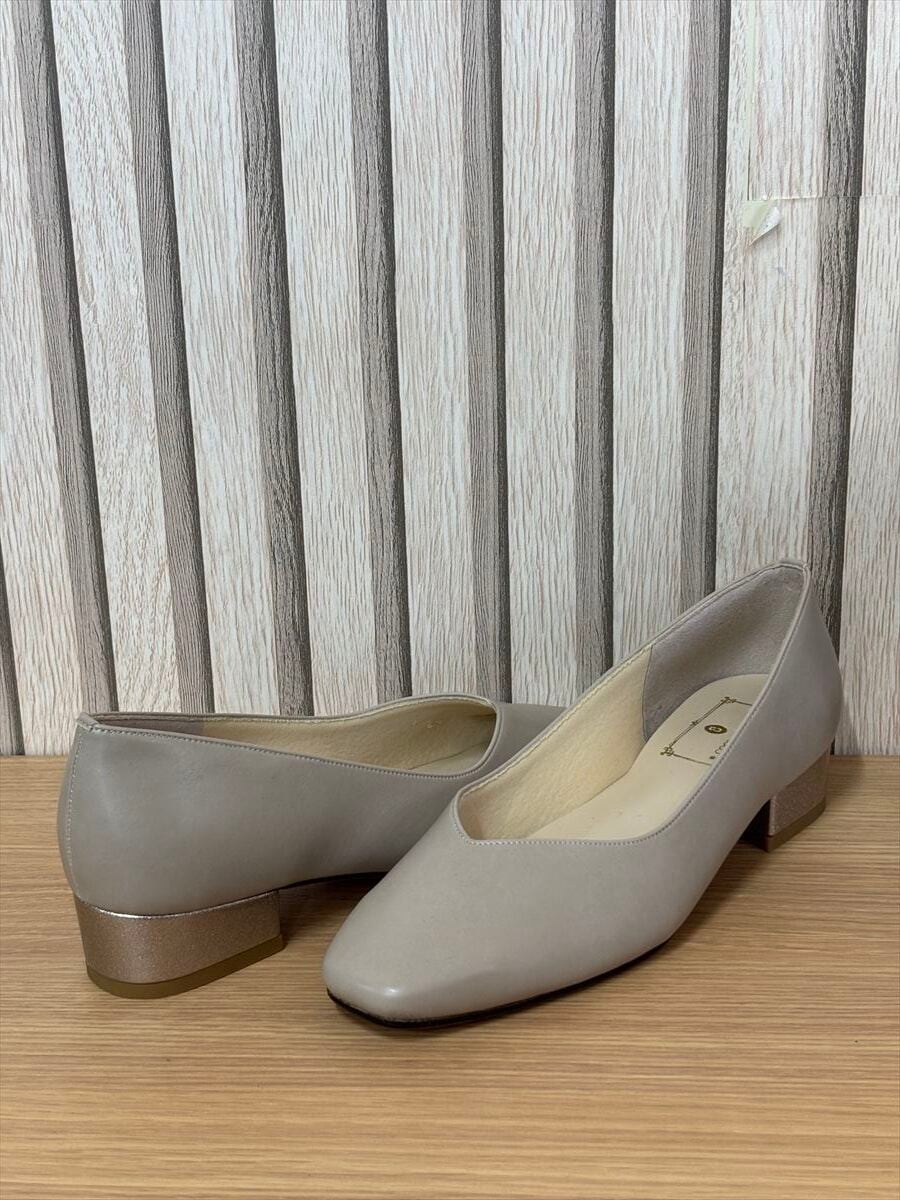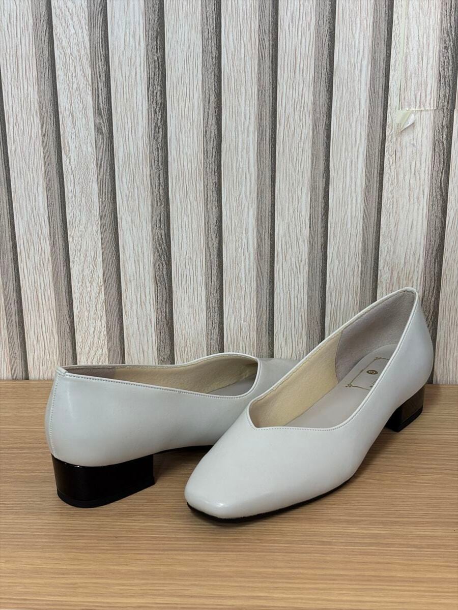 とても足入れの良いスクエアトゥのプレーンパンプス。さりげないVカットデザインと安定感のある3㎝ヒールによるバイカラーの主張が、シンプルながら上品な印象を与えます。どんなスタイルにも合わせやすく、幅広いシーンで活躍する一足です。